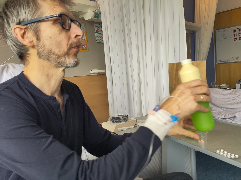 Laatst was het ook weer zo’n dag. Gerard was al twee dagen hondsberoerd door de kuren die hij moest ondergaan. Aan de zijlijn staan valt dan echt niet mee. Ik vond het steeds lastiger om aan te zien. Misselijkheid bij een ziek kind heb ik vaak genoeg meegemaakt, maar dit was wel een graadje erger. Op een gegeven moment werd ik zo onrustig en boos, dat ik het doosje met zijn chemo pillen wel in de prullenbak wilde gooien!